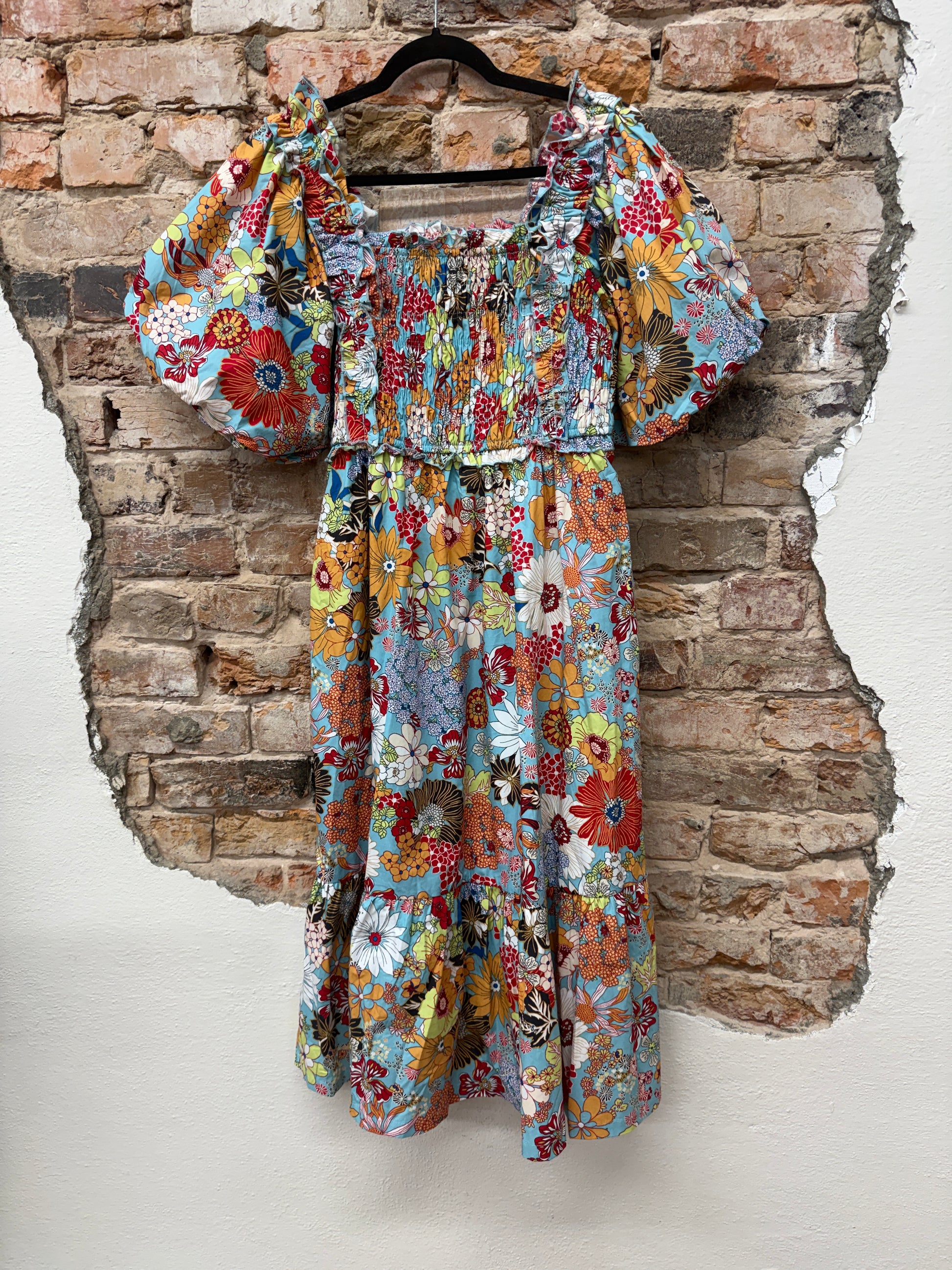 Add a pop of quirky and playful elegance to your wardrobe with our Aqua Floral Day Dress. Featuring a vintage floral print, smocked front and back, and cute puff sleeves, it's the perfect choice for a day out. A dress that'll make you want to wear it "a-floral-a-day"!