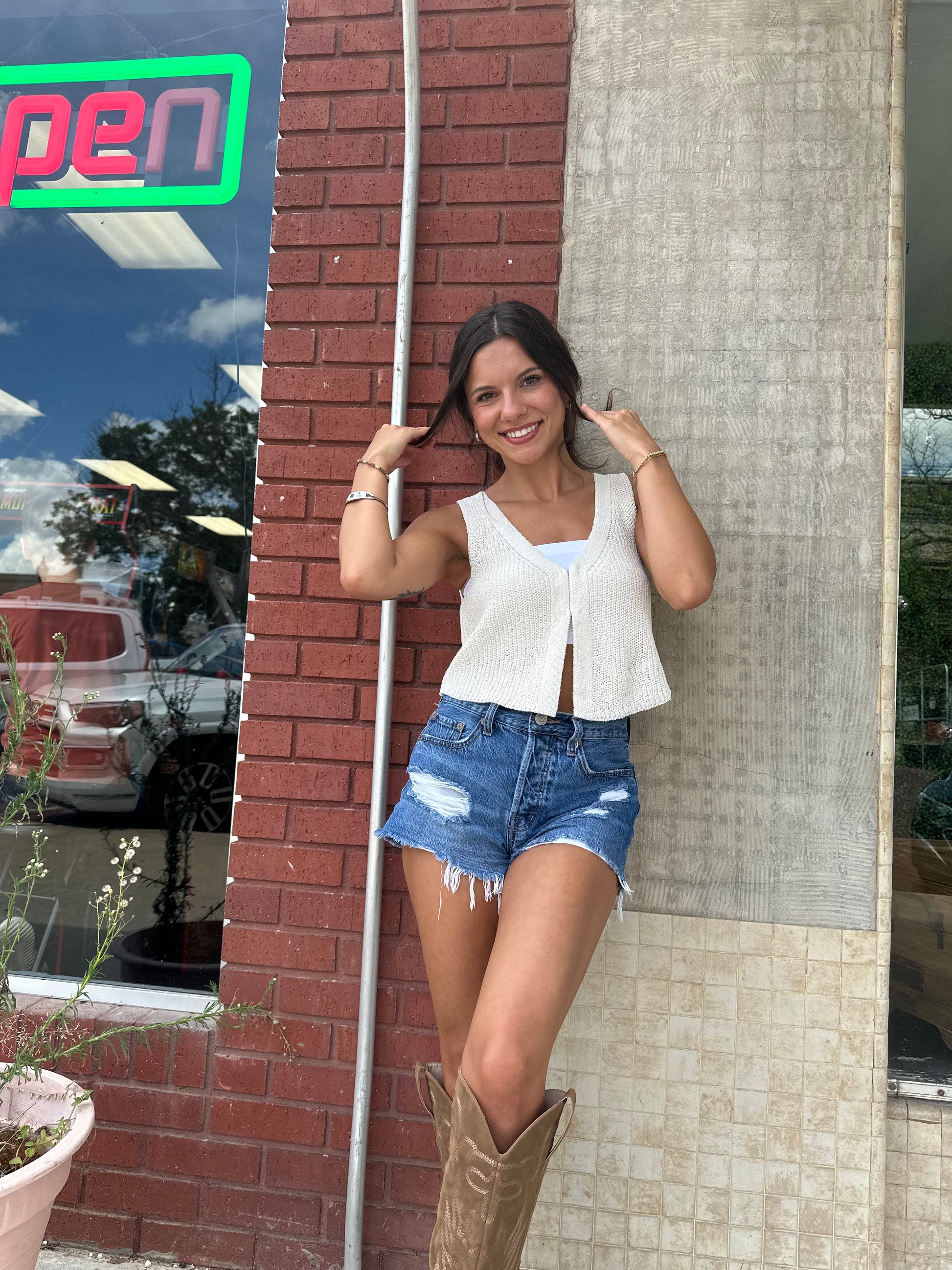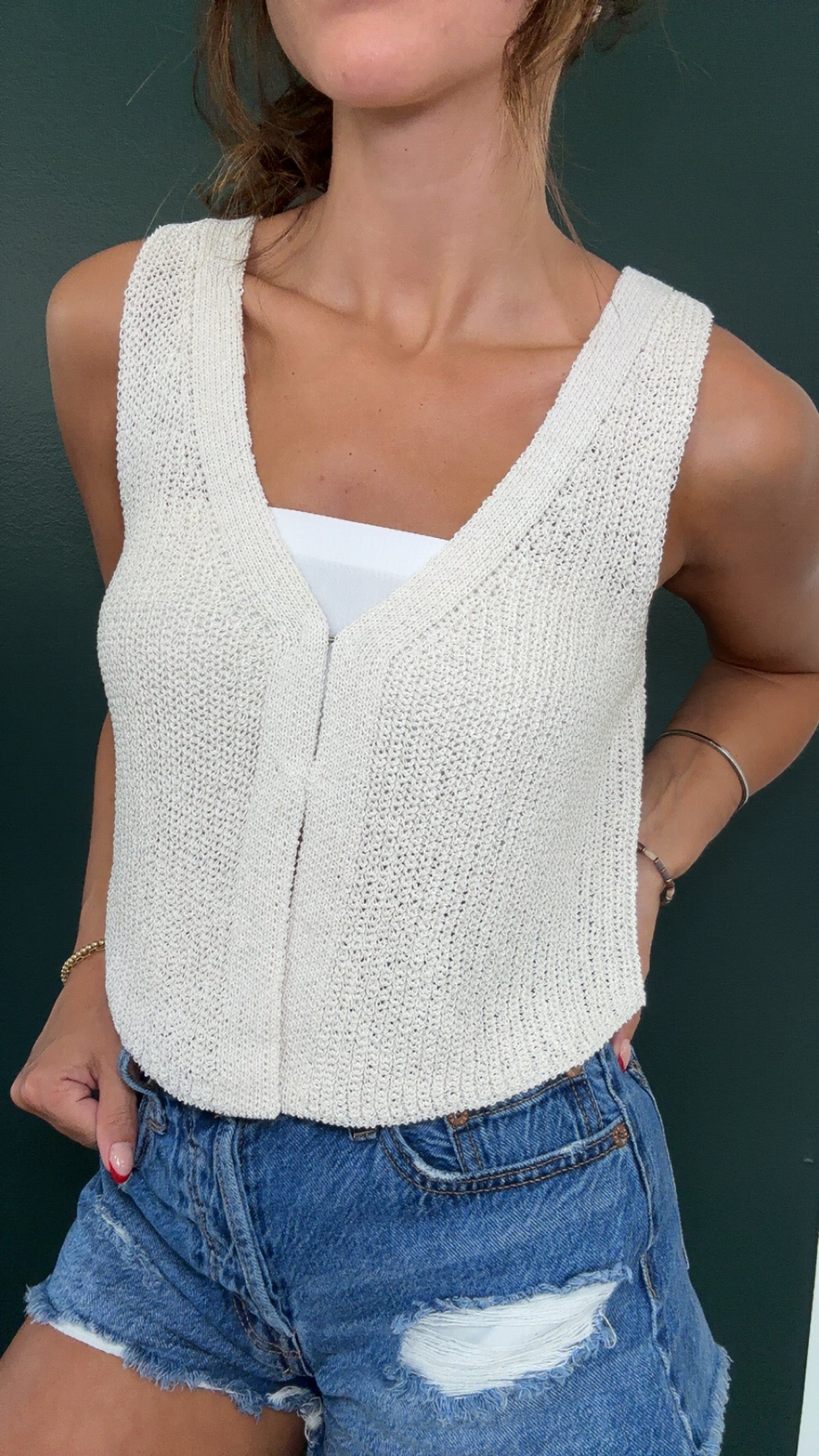 Add a fun twist to your wardrobe with the Area Codes Top! This ivory knit sweater vest features a charming front hook and eye detail that’s both stylish and easy to wear. Perfect for layering or rocking solo, it brings cozy vibes with a playful edge to any outfit.