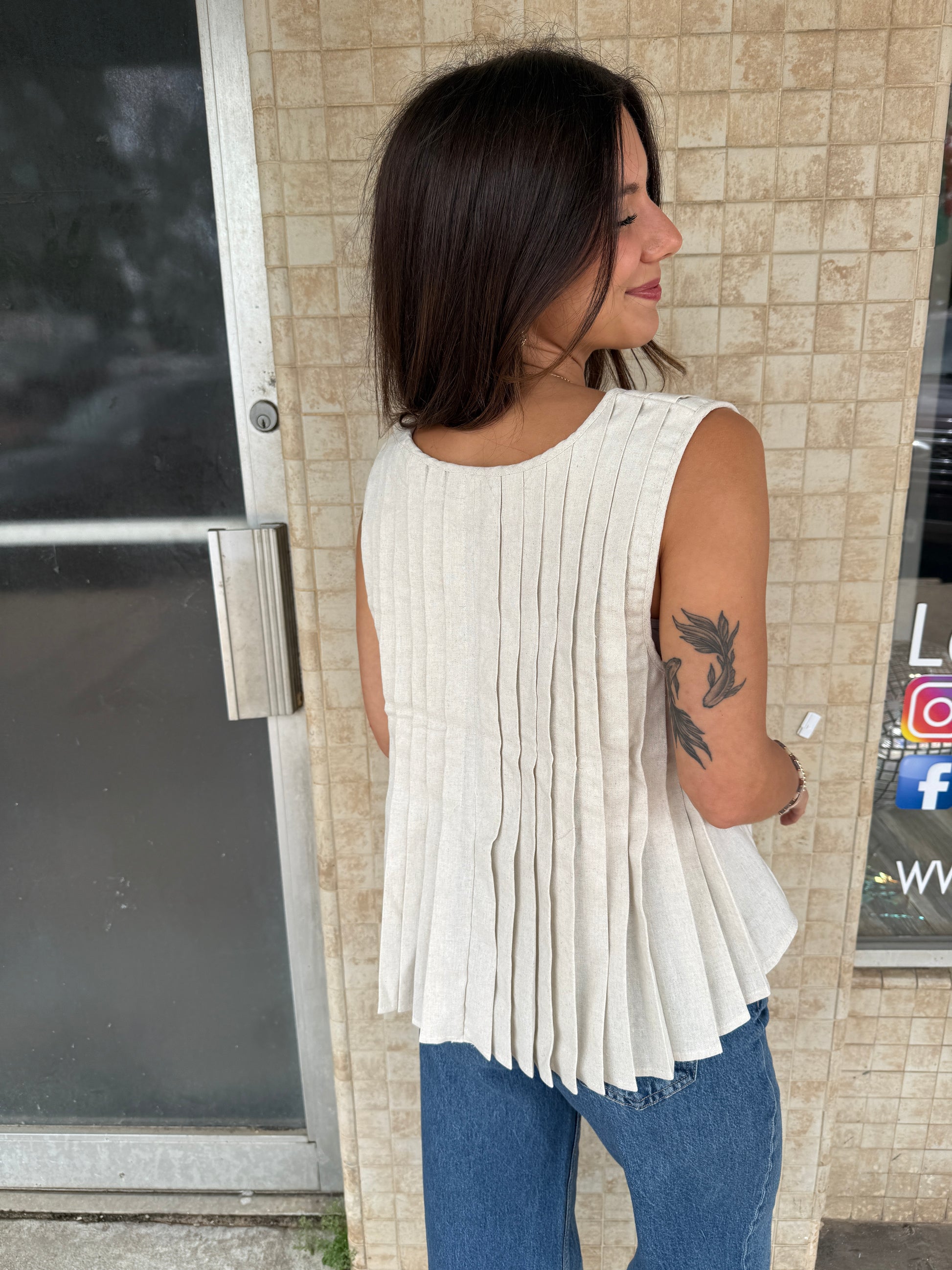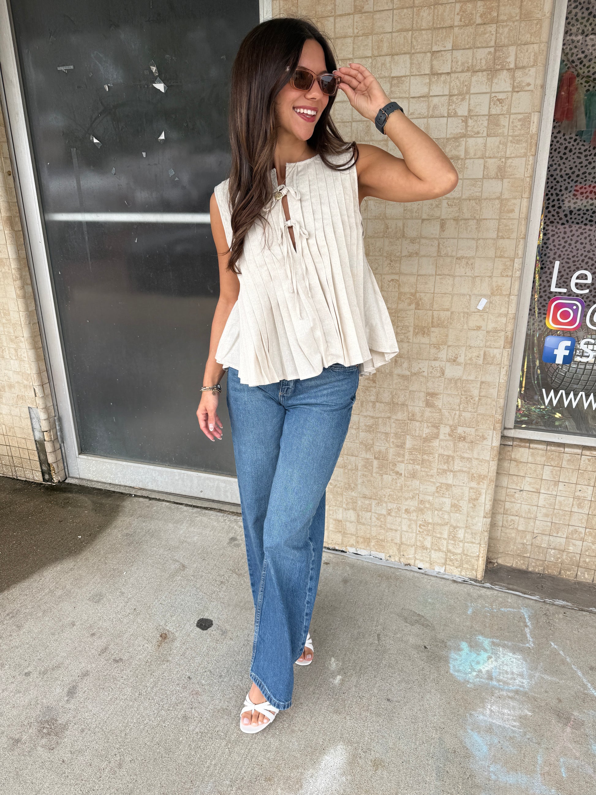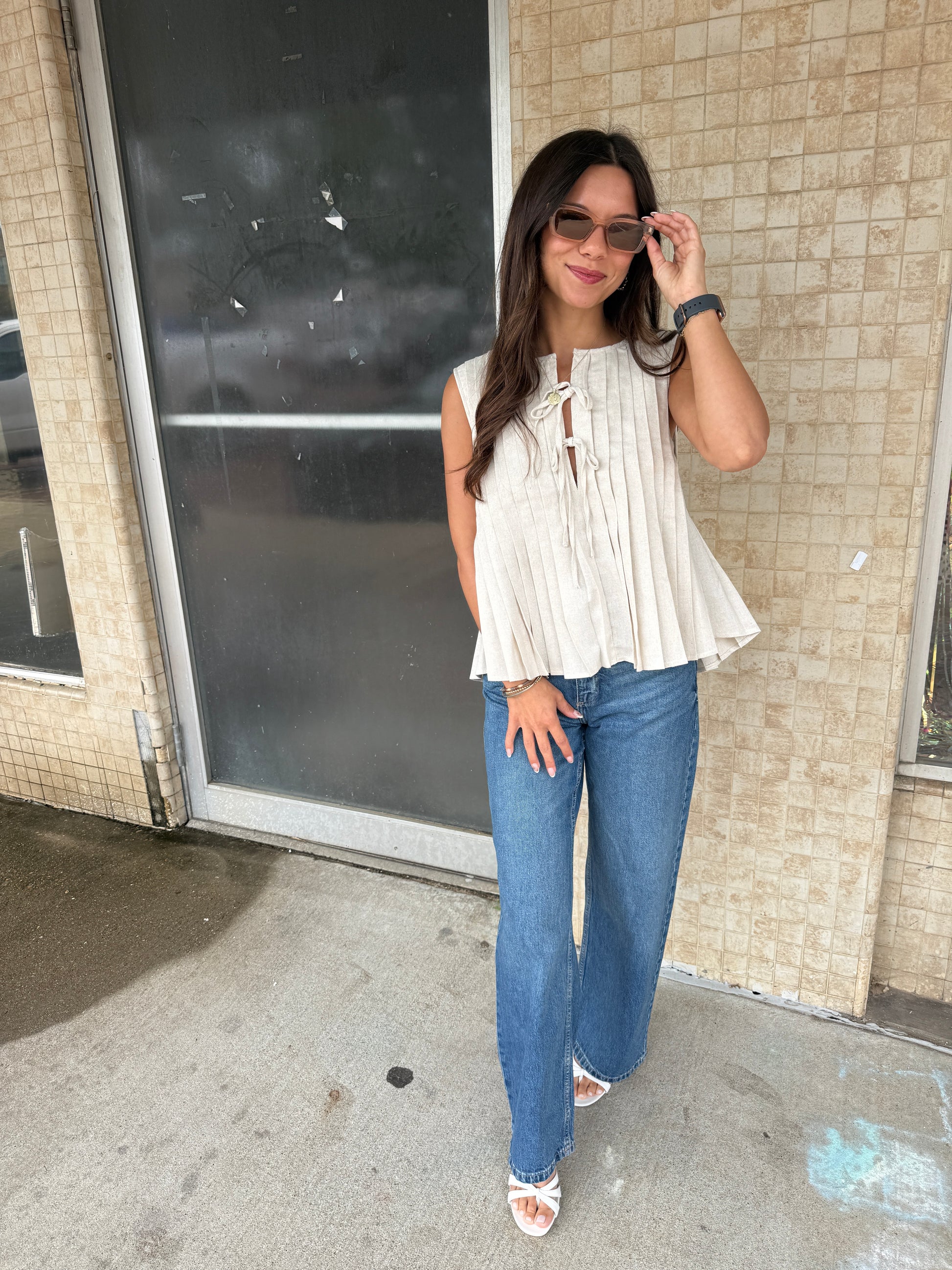 Elevate your everyday style with our Chic Simplicity Top! This oatmeal-colored blouse features elegant pleating and a woven texture that's both comfortable and eye-catching. The playful front tie detail adds a flirty finish to this versatile piece. Perfect for brunches, office days, or weekend adventures—just knot, smile, and go!