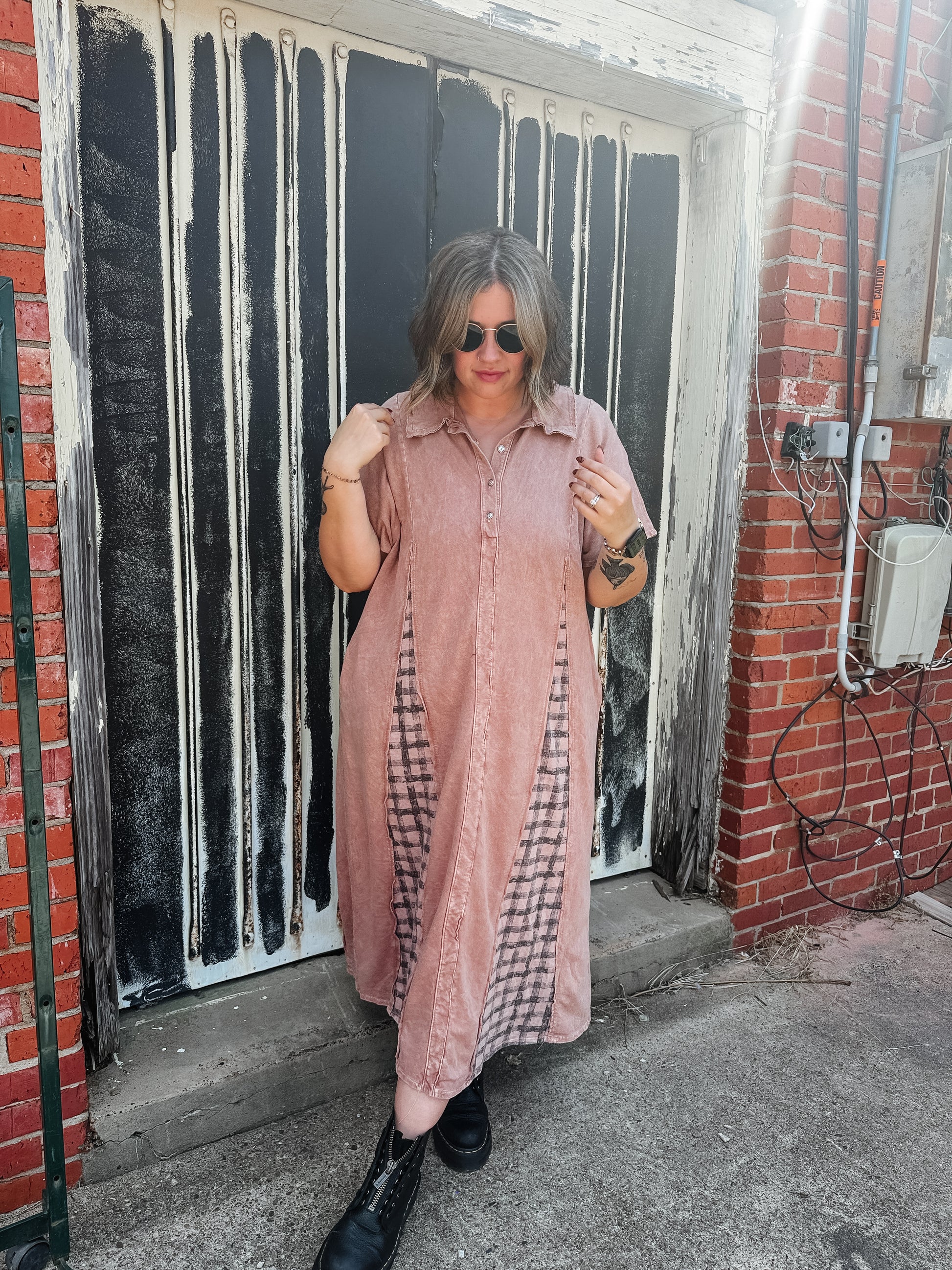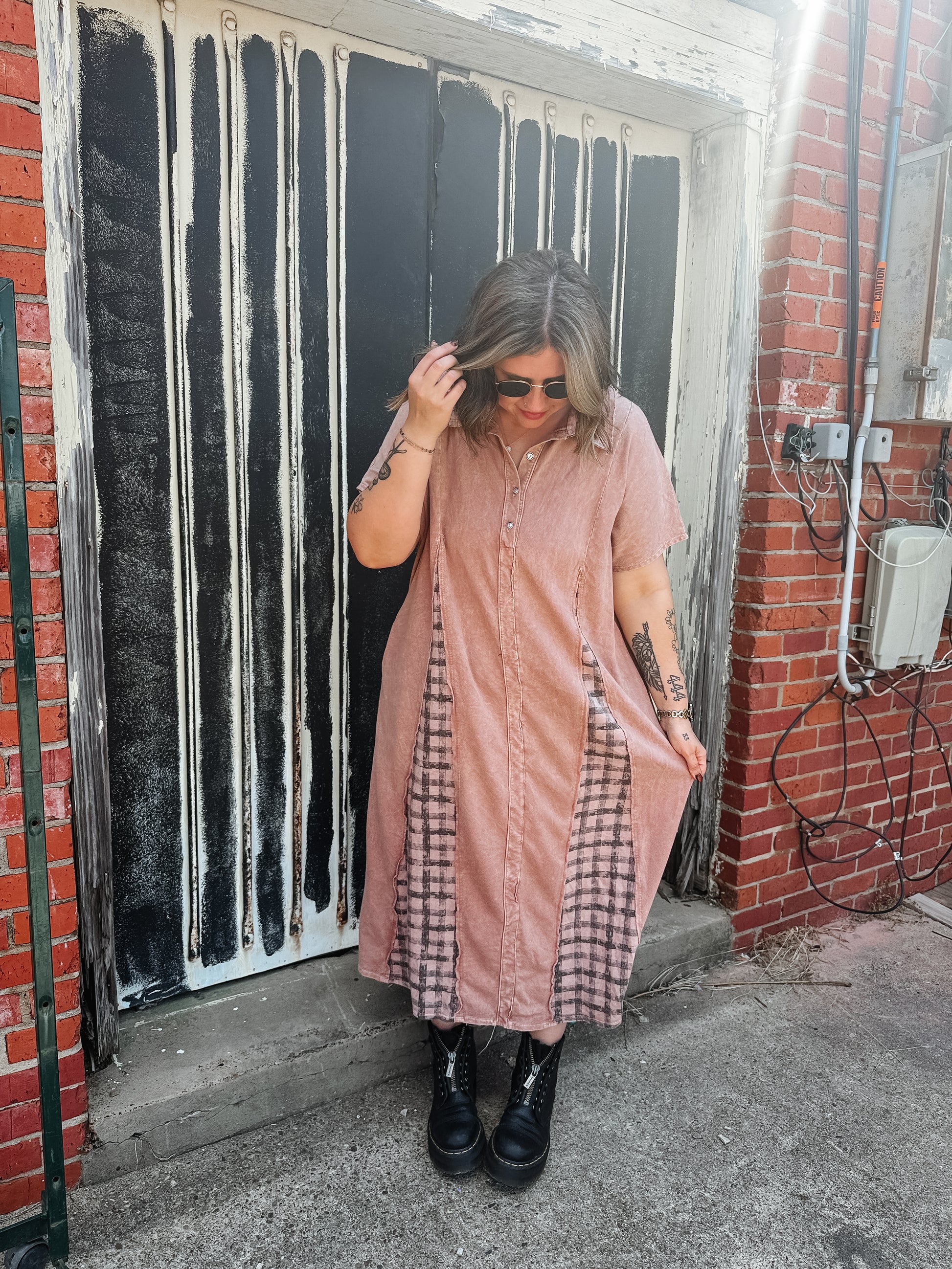 Step out in style with the Cool Girl Dress — a mineral-washed, checkered maxi featuring a chic collar and playful slit details. Effortlessly cool and comfy, it’s perfect for turning heads and catching breezes all day long. Embrace your inner trendsetter with this fun, flirty wardrobe staple!