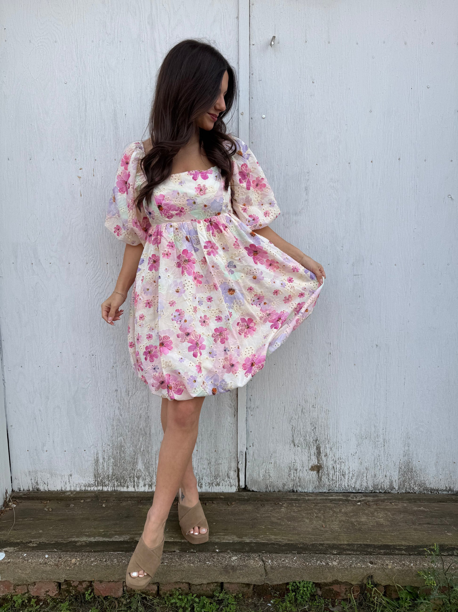 Get ready to bloom in style with our Endless Blooms Dress! This floral eyelet lace babydoll mini dress features a beautiful buddle bottom, perfect for adding a playful touch to any outfit. With its unique design, you'll stand out in any crowd. The smocked back is very forgiving!!