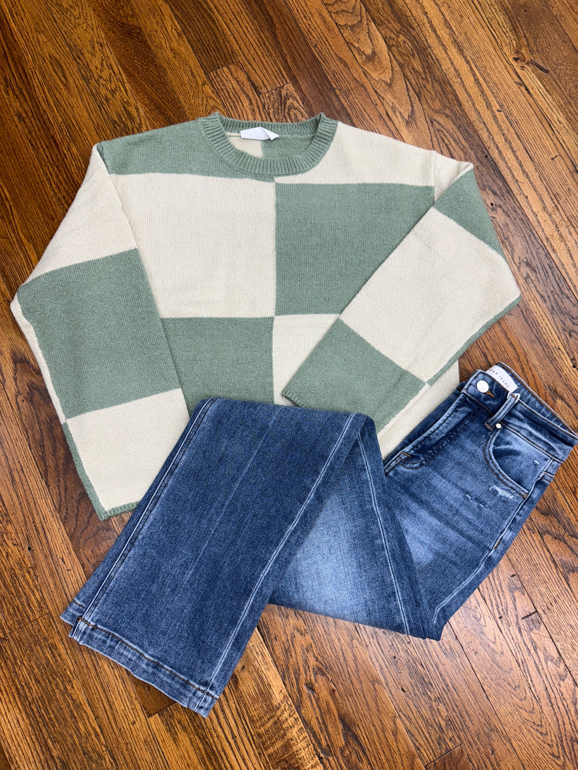 Wrap yourself in cozy charm with the Fully Alive Sweater, featuring a lively cream and sage green checkered pattern. Perfect for adding a dash of playful style to any outfit while keeping you comfortably warm. Whether you’re out with friends or relaxing at home, this sweater brings a fresh, fun vibe to your wardrobe.
