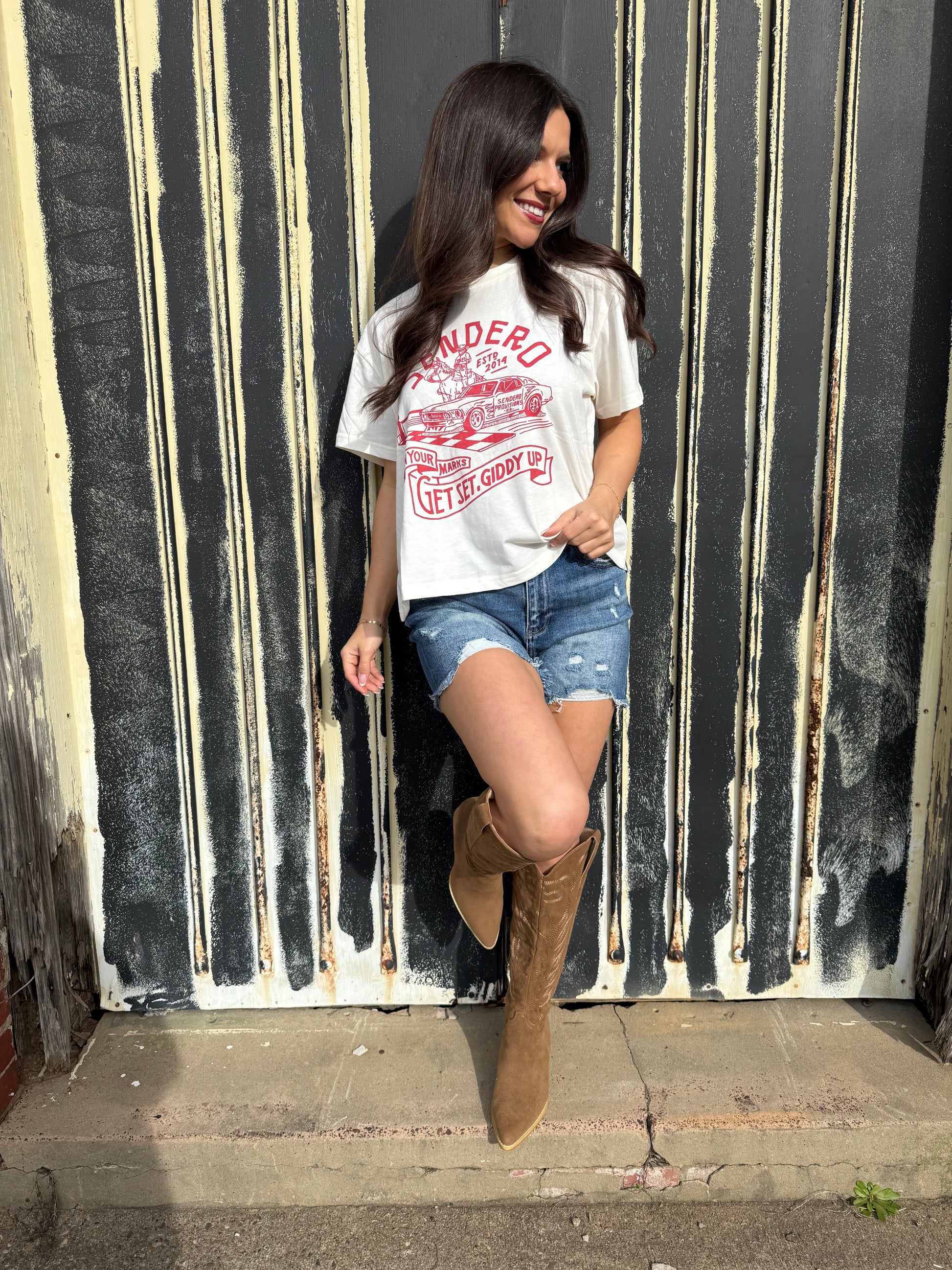 Rock a high-rise look with Hometown Shorts. These dark distressed shorts add an edgy touch to your outfit. Perfect for a night out or a casual day in the city.