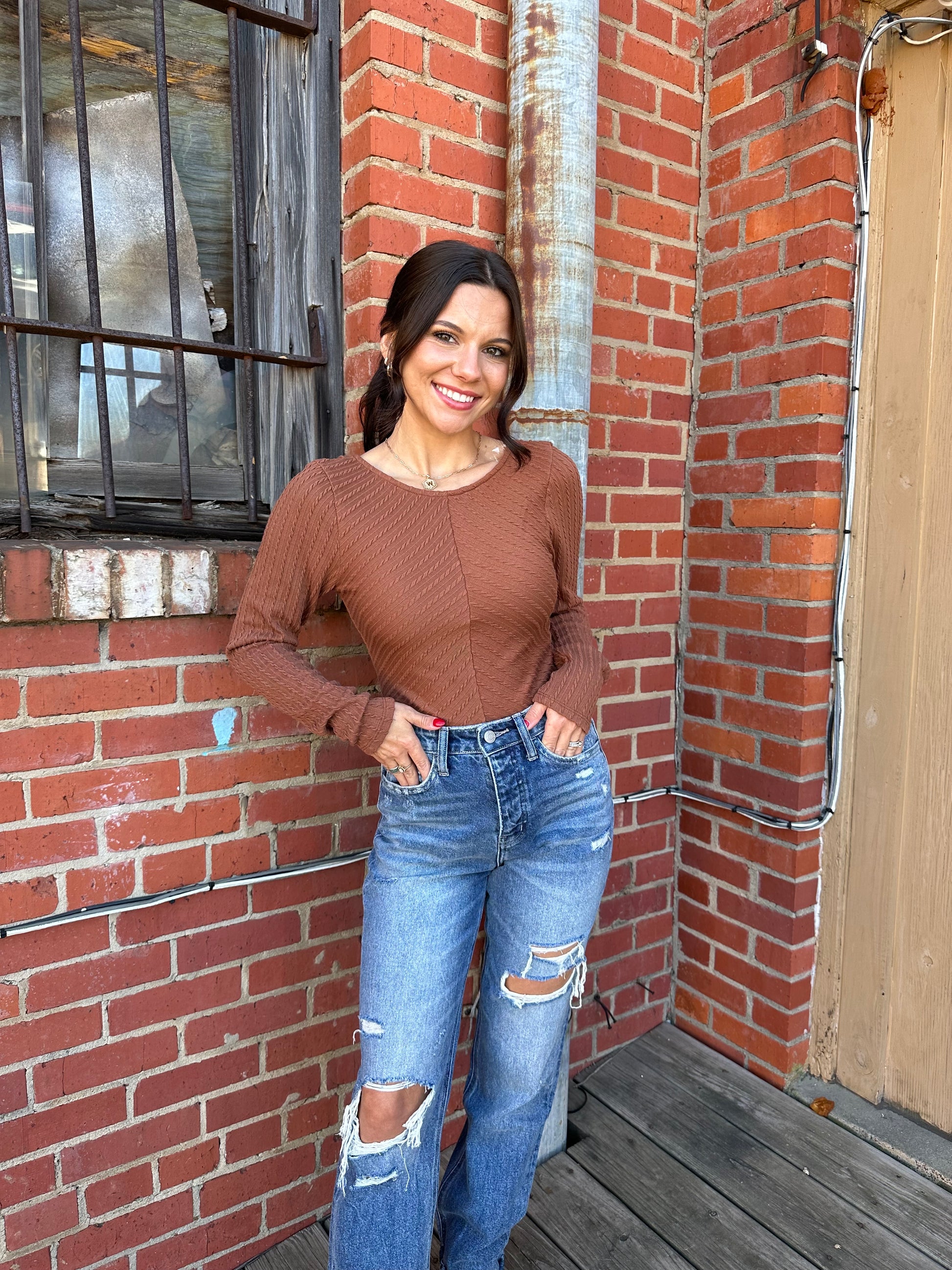 Treat yourself to some serious style in this cute-as-can-be long-sleeve bodysuit. Crafted from textured knit and featuring a daring low back, it'll turn heads with every move you make. (No one will have any idea how you look so good!)