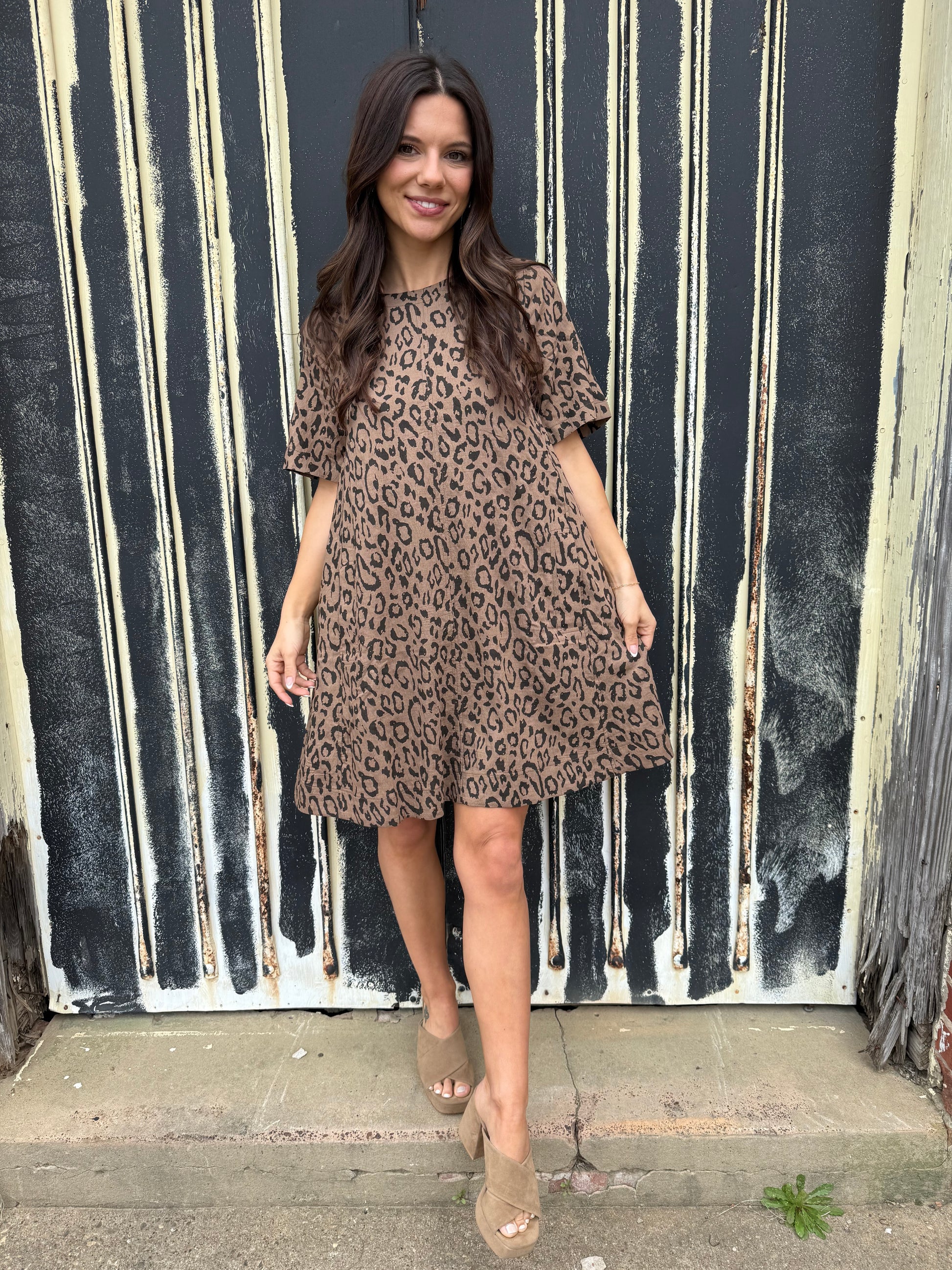Step into style with our Leopard Lane dress. This mocha leopard printed mini dress is both bold and comfortable, perfect for any occasion. Embrace your wild side with this must-have addition to your wardrobe.