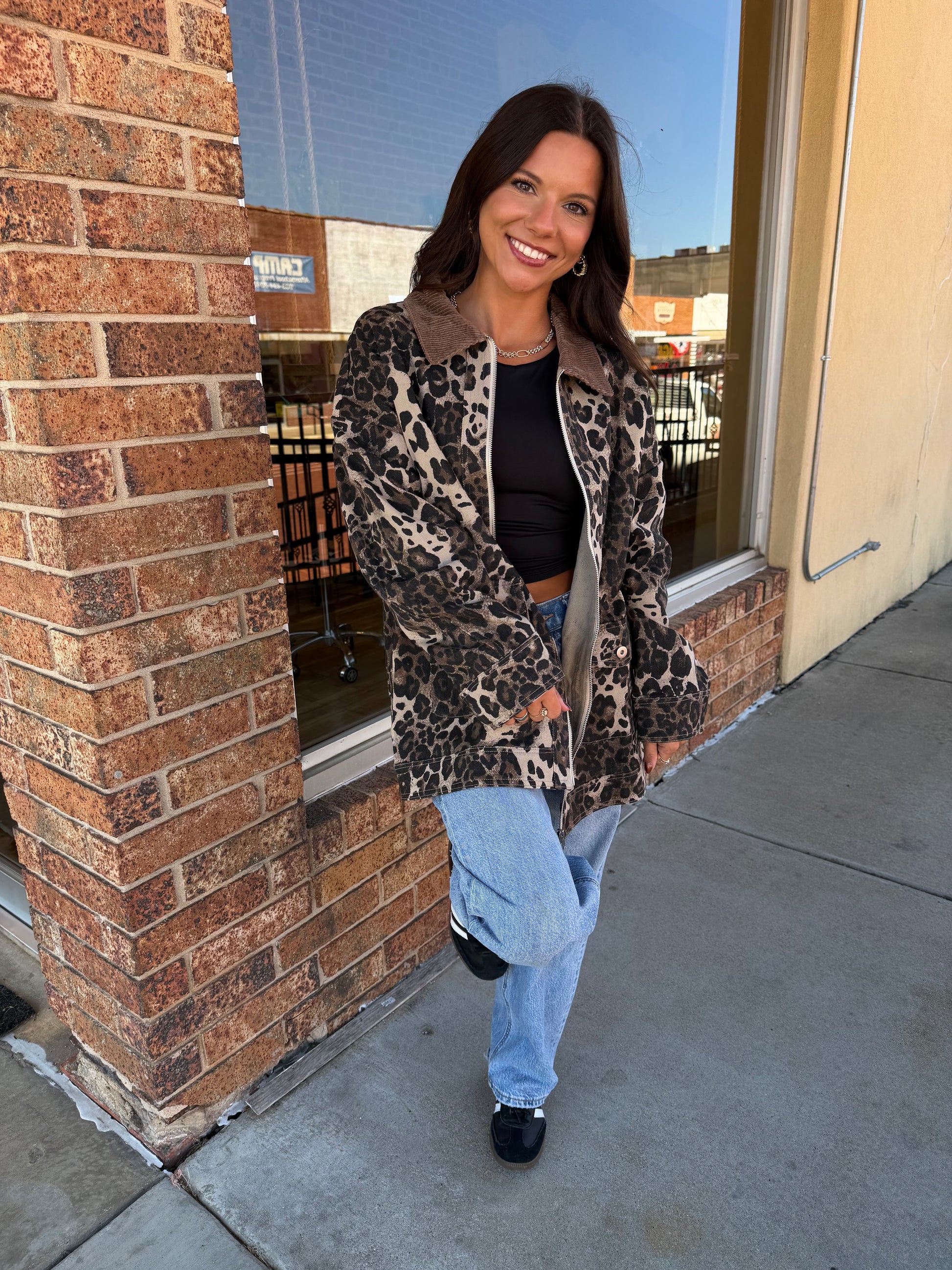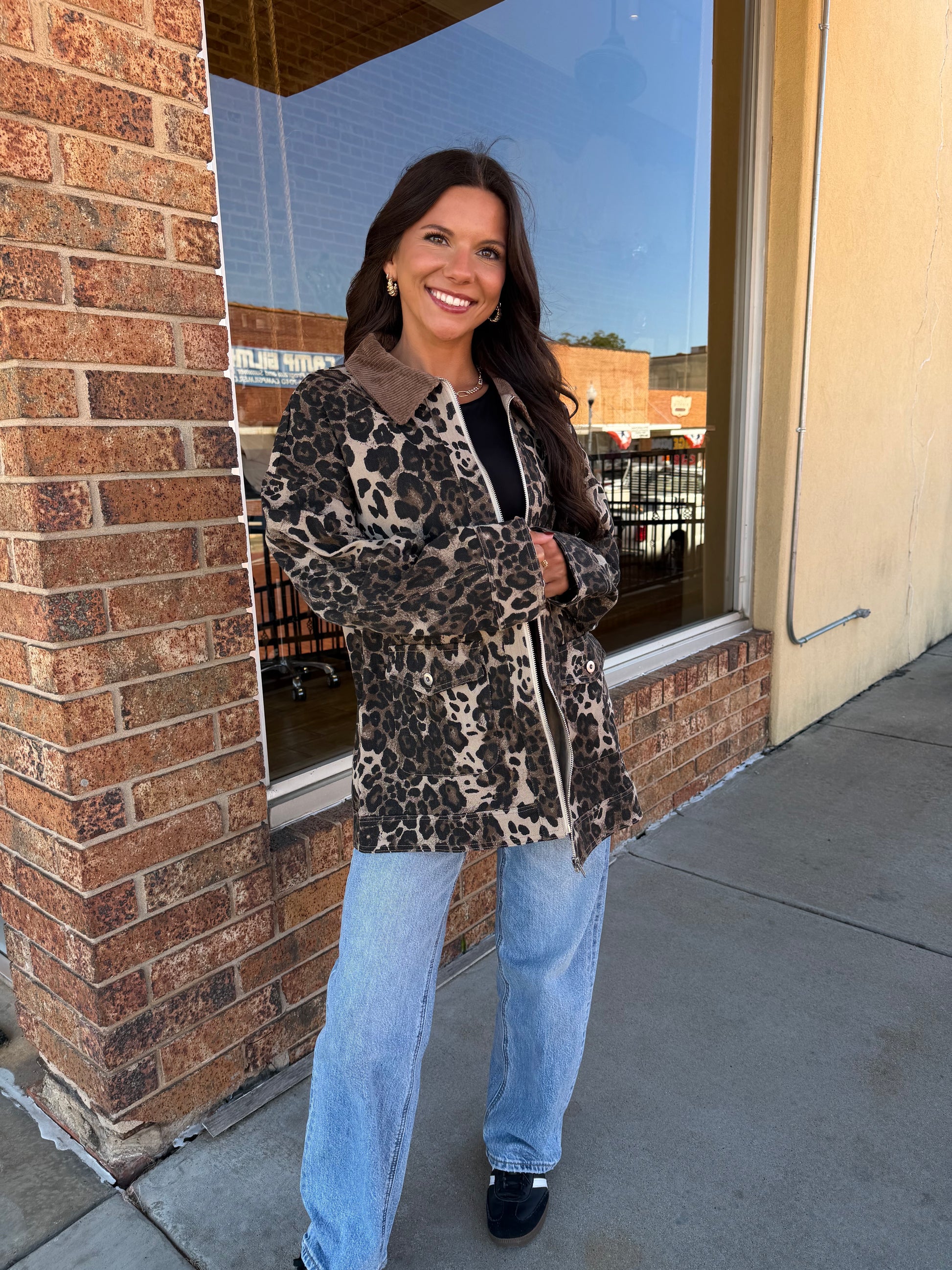 Turn heads with the Lipstain Jacket in mocha leopard print! Crafted from washed twill cotton, this playful jacket offers both comfort and a bold style statement. Perfect for adding a splash of wild charm to any outfit while keeping you cozy and effortlessly cool.