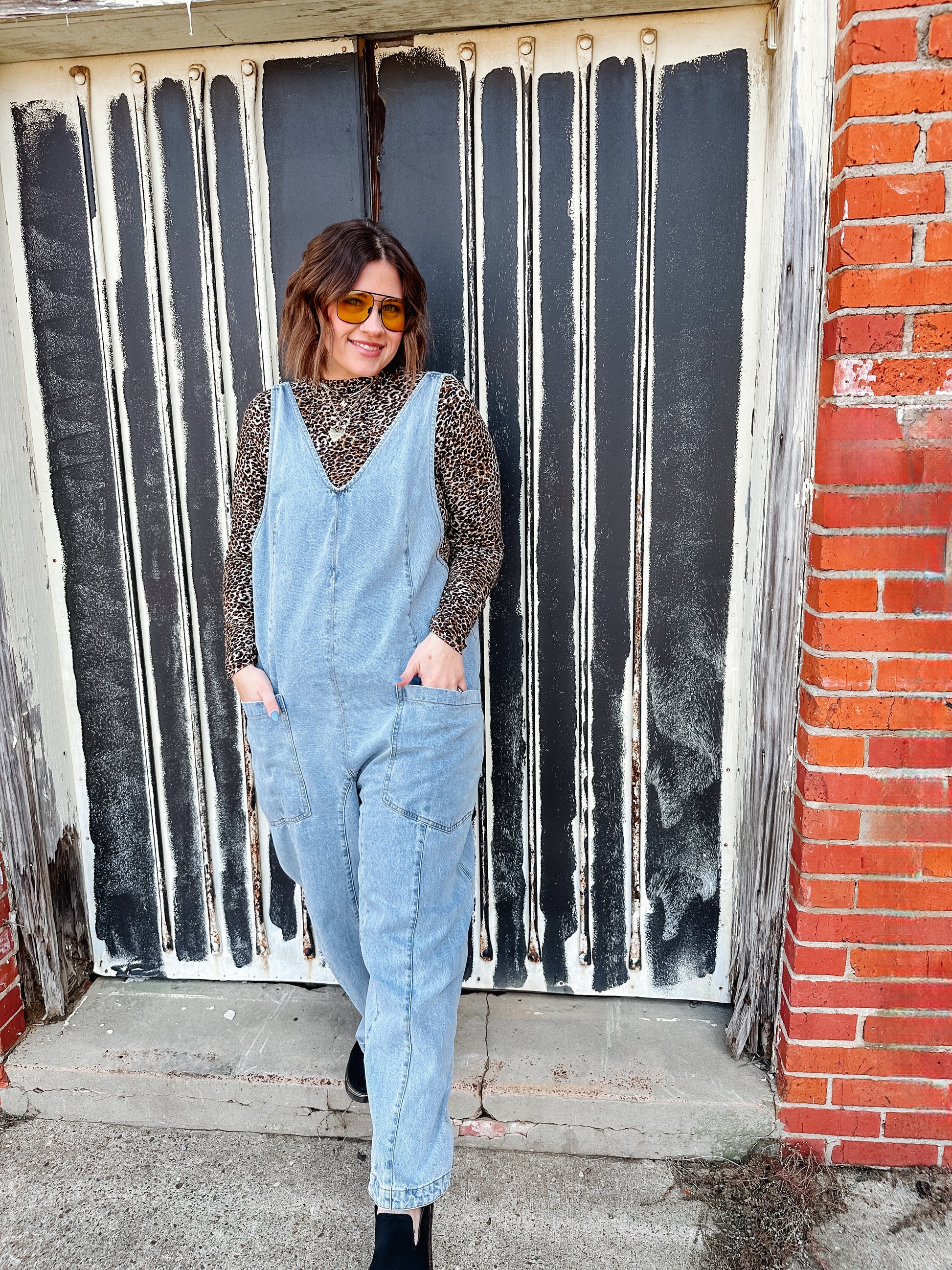 Make a statement in our Many Moments Jumper! Made from quality denim, these low rise patch pocket overalls will give you all the looks. Enrich any outfit with the perfect amount of edge and style. Throw it on and watch the moments unfold!