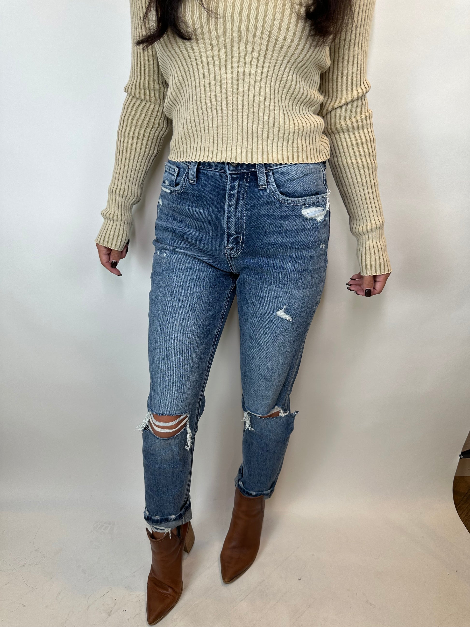 Ready to stand out? These Mase Straight Jeans will make sure you get noticed with their super-high-rise and hidden button. And yet their distressed, straight-leg fit ensures you still look effortlessly cool. Perfect for a stand-out day-out!