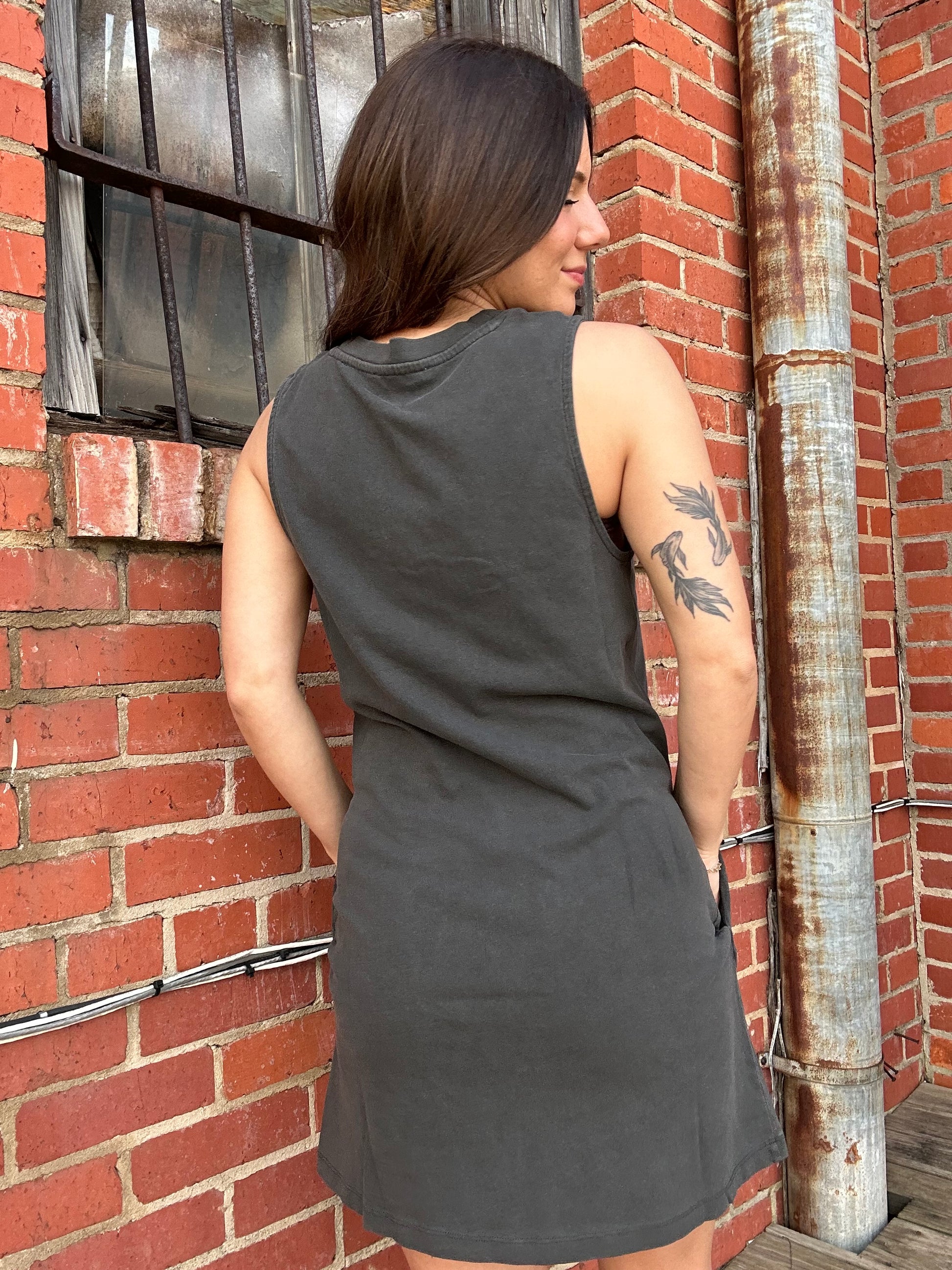 Get ready to rock the Must Have Tank Dress in black, sage green, or dusty indigo. The acid wash finish gives this tank dress a cool, edgy vibe that is perfect for any casual occasion. With a comfortable t-shirt style and trendy colors, this dress is a must-have in your wardrobe.