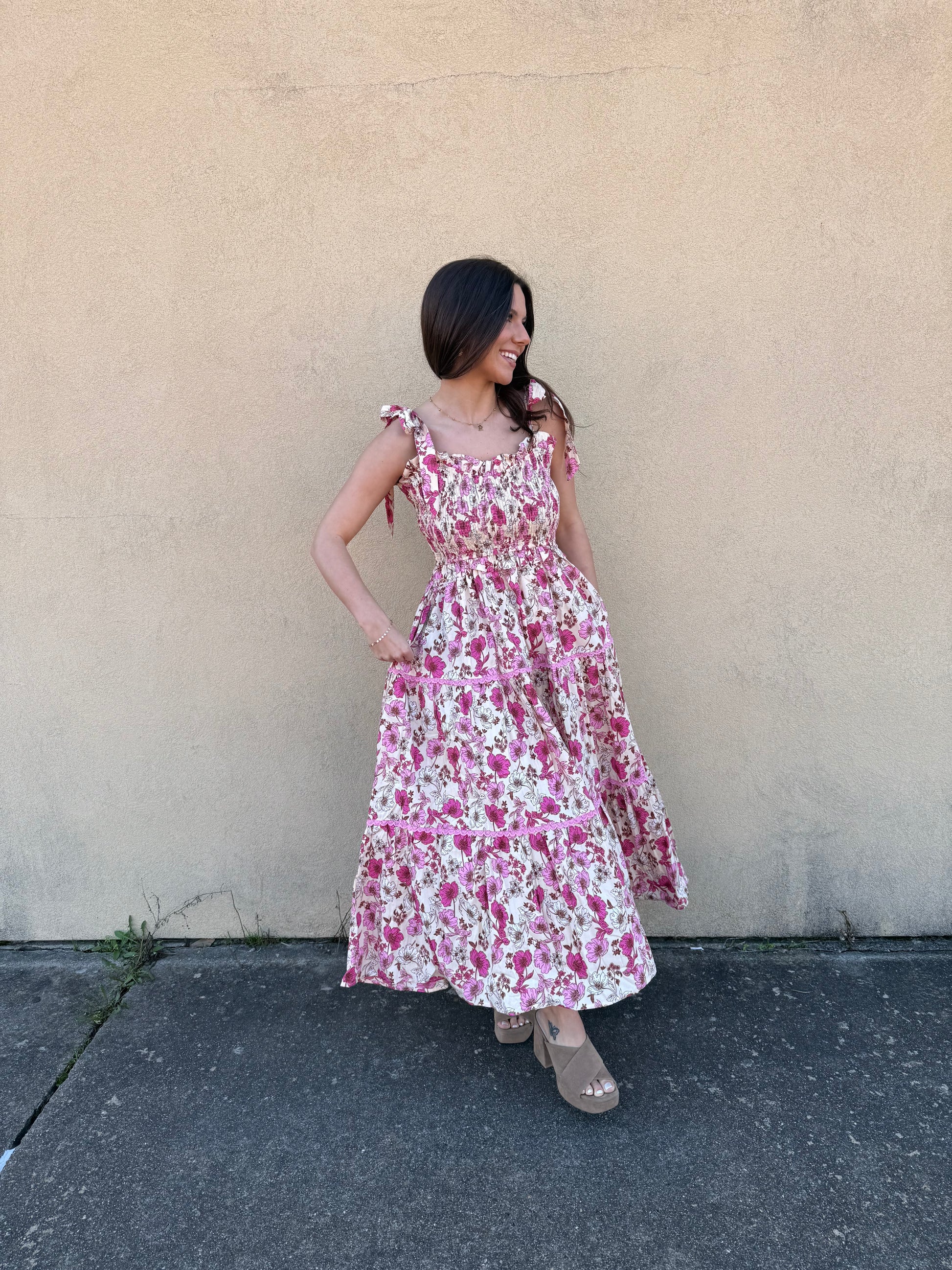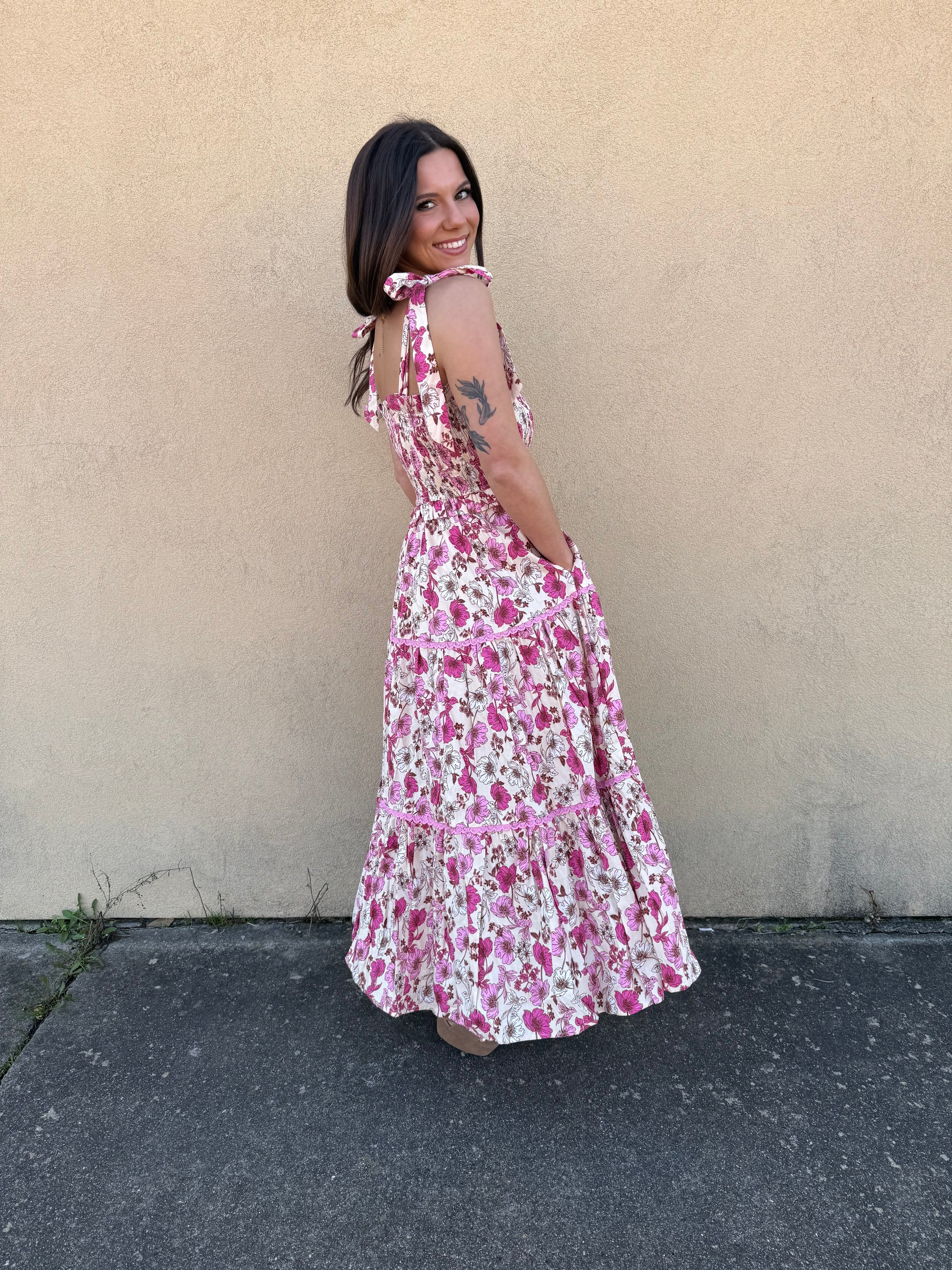 Get ready to turn heads in our Mystic Florals Dress! This playful midi dress features a beautiful peach multi floral design, accented with ruffled lace trim for a touch of romance. Perfect for any occasion, this dress will have you feeling confident and stylish.