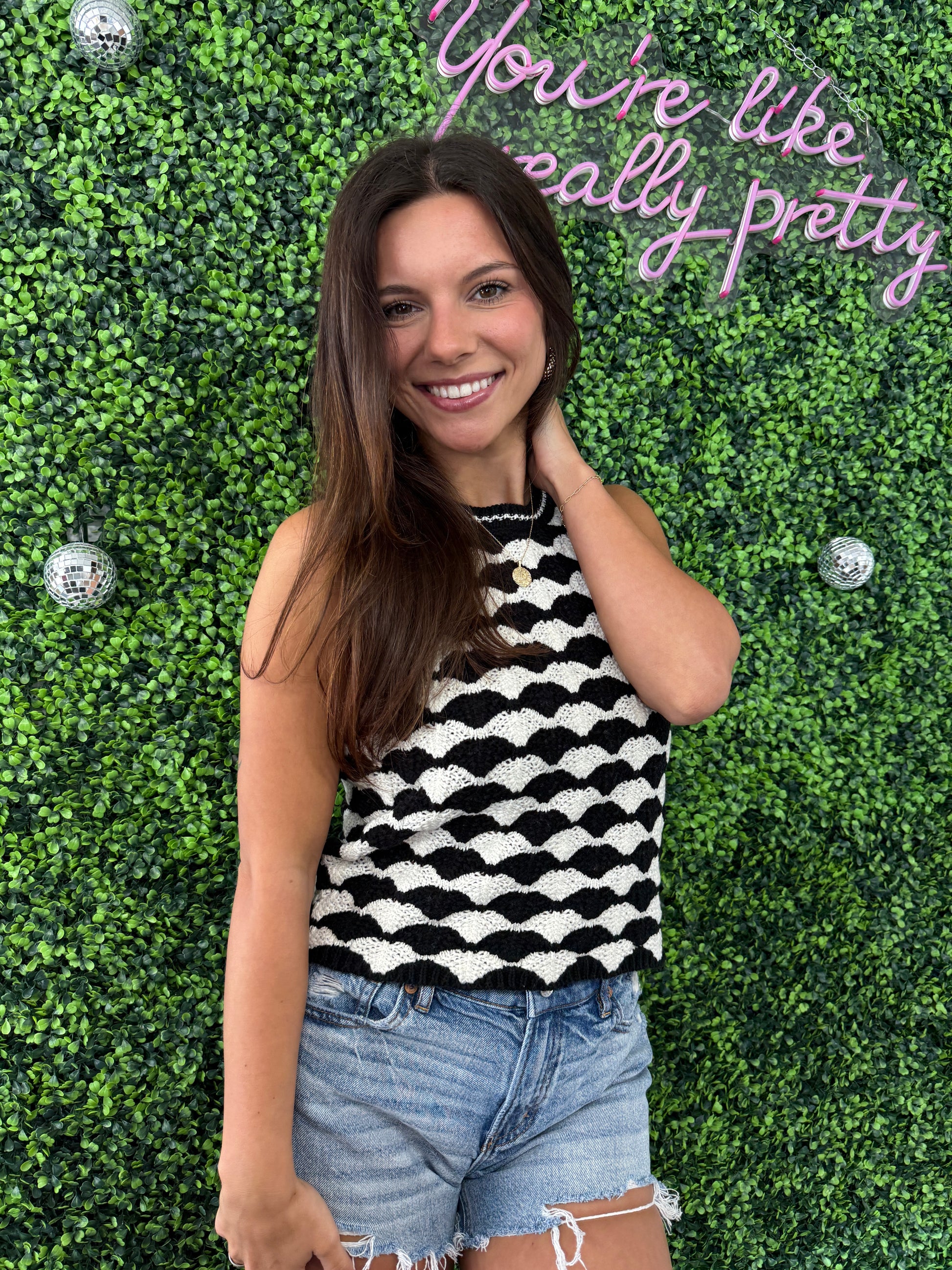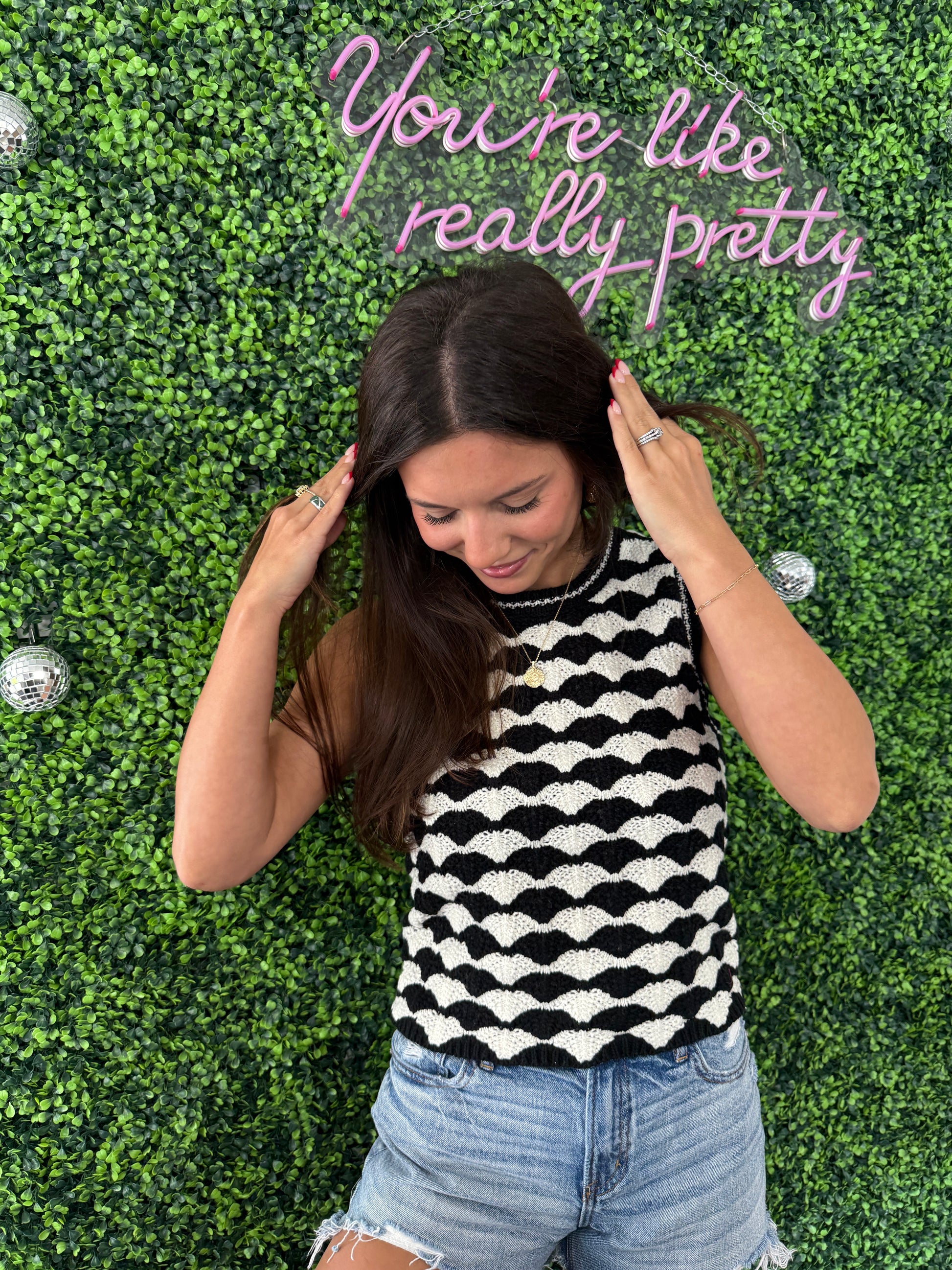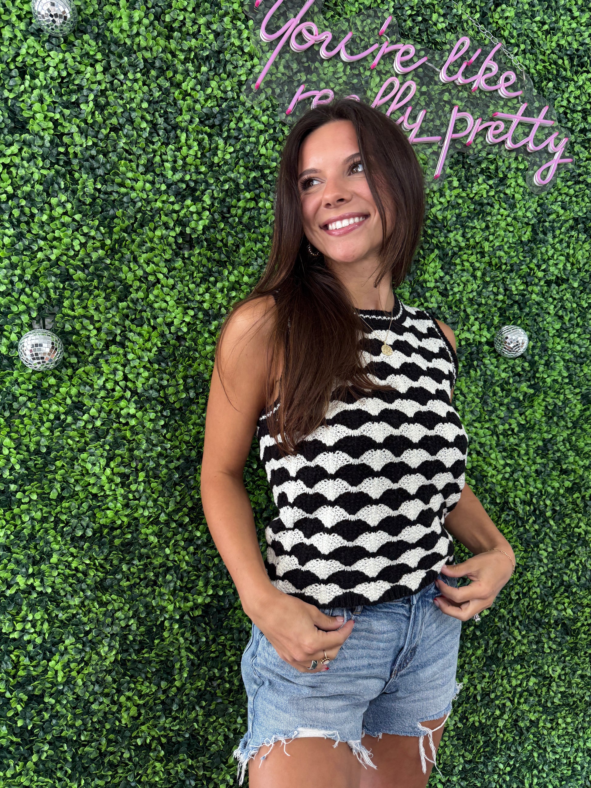 Add a fun twist to your wardrobe with the No Scrubs Top, featuring a charming black scallop pattern. This playful design brings a fresh, flirty vibe perfect for casual outings or lively gatherings. Comfortable and stylish, it’s your new go-to for effortless cool.