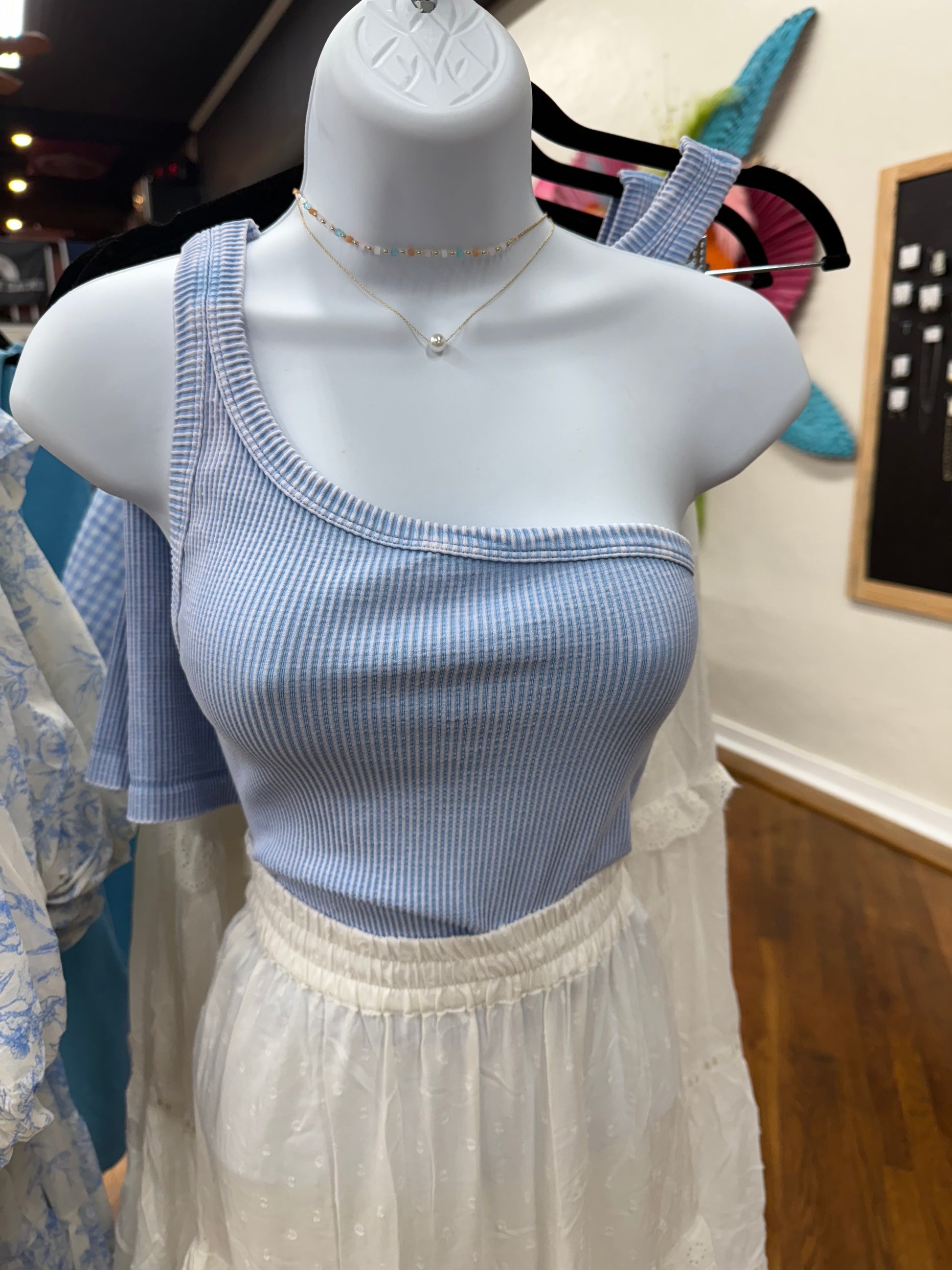 Get ready to turn heads with our Vintage One Strap crop top! This unique top features a single strap and a vintage design that is sure to make a statement. And with its one-size-fits-all sizing, you'll never have to worry about finding the perfect fit. Spice up your wardrobe with this playful and trendy piece.