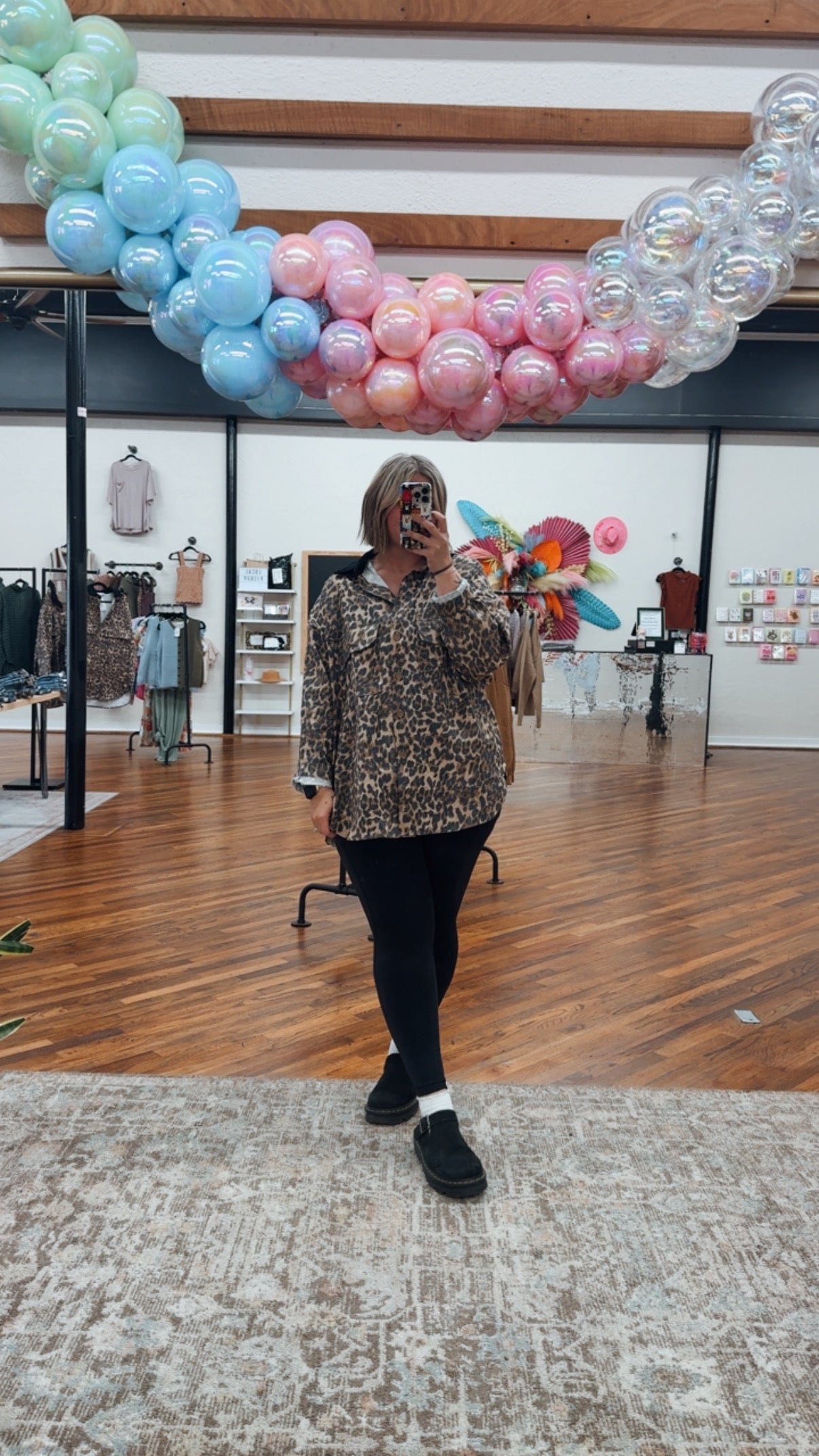 The West End Leopard Shirt brings wild style to your everyday wardrobe. This brown leopard button-down features a striking black collar that frames your face perfectly, while functional detailed pockets keep your essentials close. Whether you're channeling retro vibes or making a bold fashion statement, this piece proves that animal print never goes out of style. Layer it, tuck it, or wear it open—versatility meets attitude in one seriously cool top.